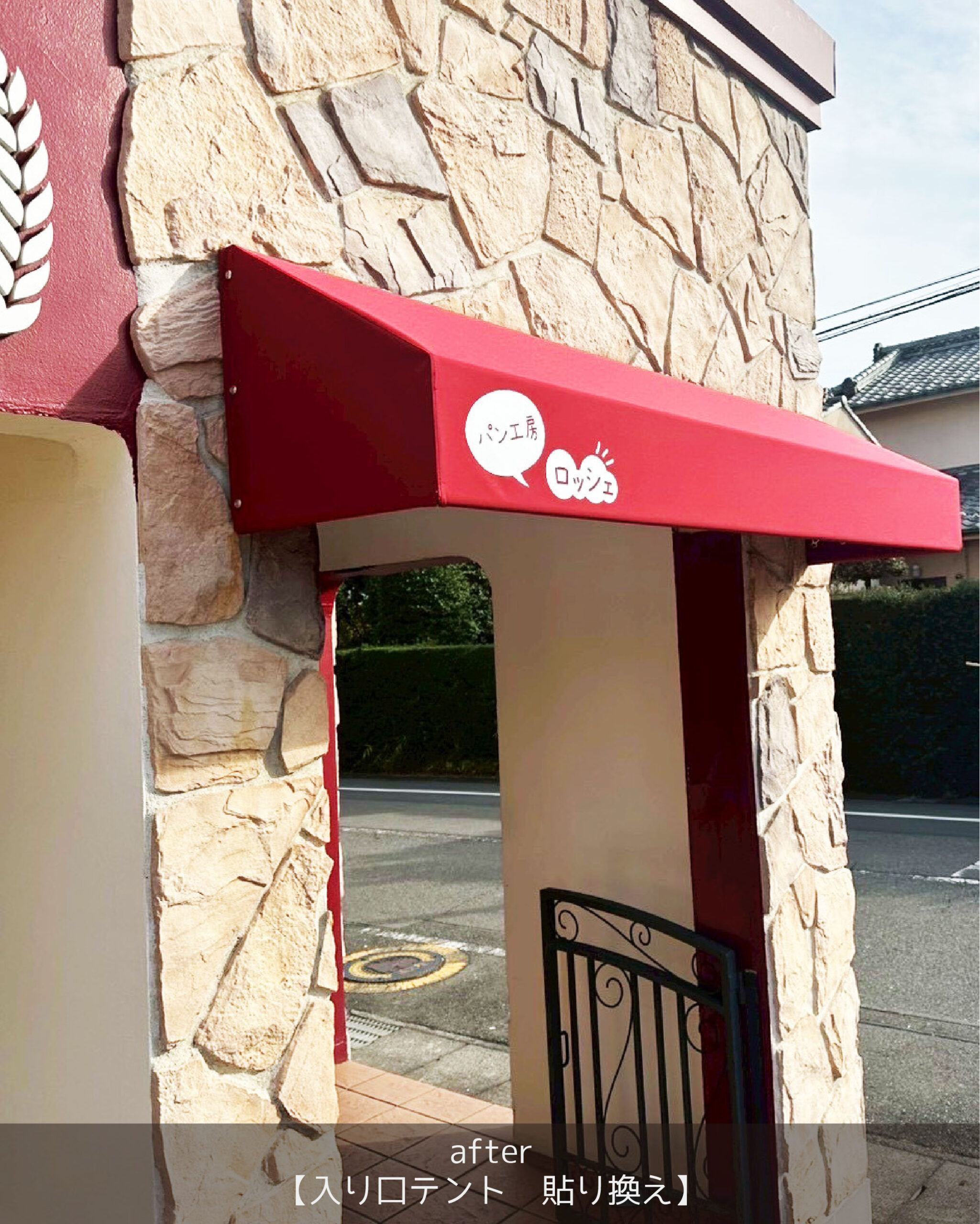 今回は永年劣化に伴い、外部サイン・テント貼り替えを承りました。