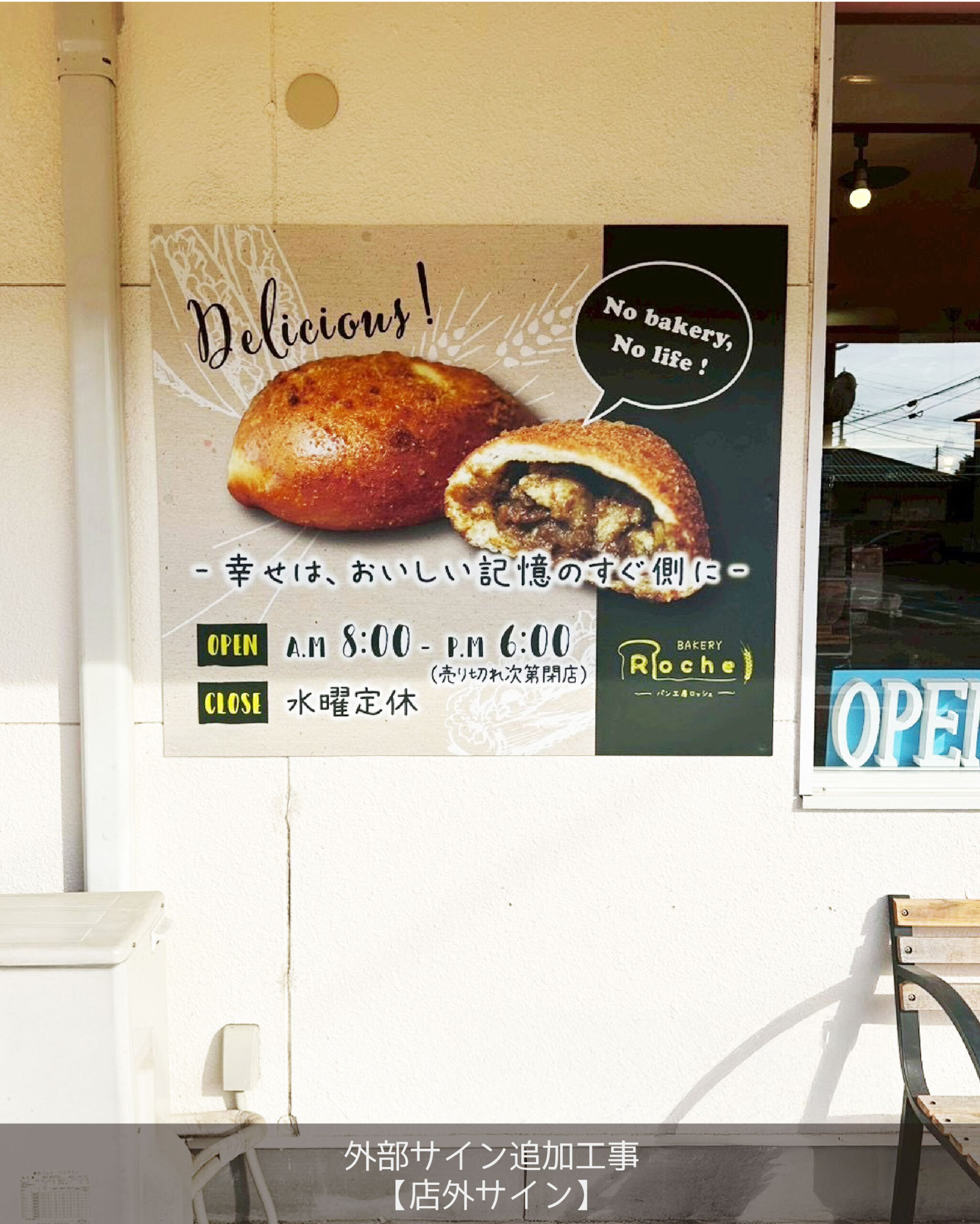 外部看板の劣化に伴う貼り替え、新たなサインの追加など、