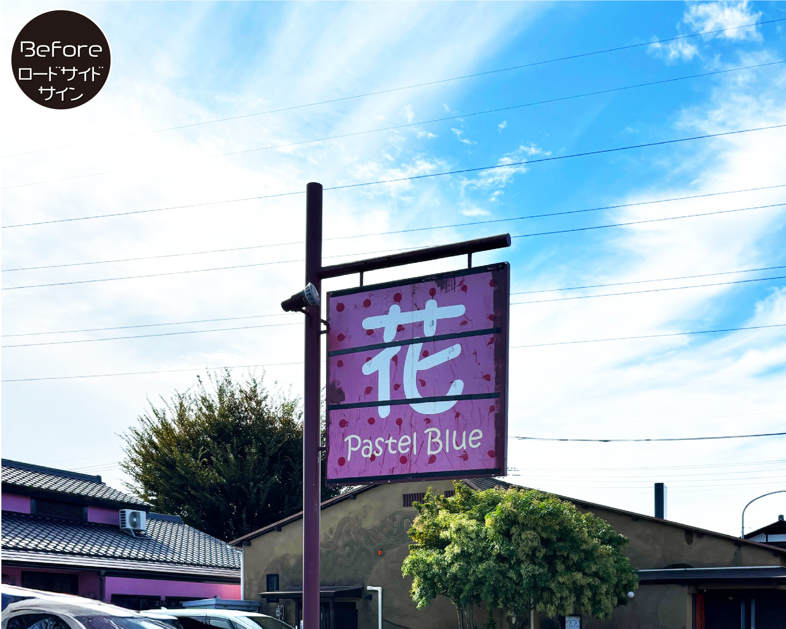 ロゴ作成ではオーナー様の愛犬をモチーフにし、ご希望カラーのライトブルーを使用して、建物上部メインサイン・フェンスサイン・ロードサイドサインを制作、設置しました。